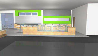 Im gastronomischen Teil des Gebäudes ist ein Restaurantbereich, ein Bistrobereich mit Freisitz und eine Eventfläche mit Loungebereich und ein Internetcafe inszeniert.
