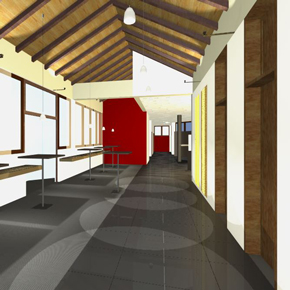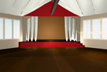 Der Entwurf für den Veranstaltungsraum beinhaltet die Neugestaltung des Deckenbereiches sowie Farbgestaltung des umschließenden Raumes und den Bühnenbereich.