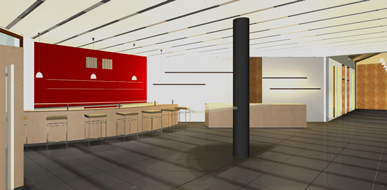 Die neuen Teilbereiche Empfang, Garderobe, Bewirtung, Verweilen, Wegeführung und Lounge des Foyers wurden gänzlich neu konzepiert. Ein besonderes Augenmerk wurde auf den Entwurf der verschiedenen Zonen und deren Beleuchtungskonzeption und Farb-Materialgestaltung gelegt.