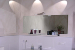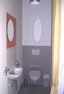 Klappläden restauriert, Bäder saniert. Ein besonderes Augenmerk gilt dem Zusammenspiel der Material-und Farbgestaltung von Boden-Wand- Decke und der Lichtkonzeption.